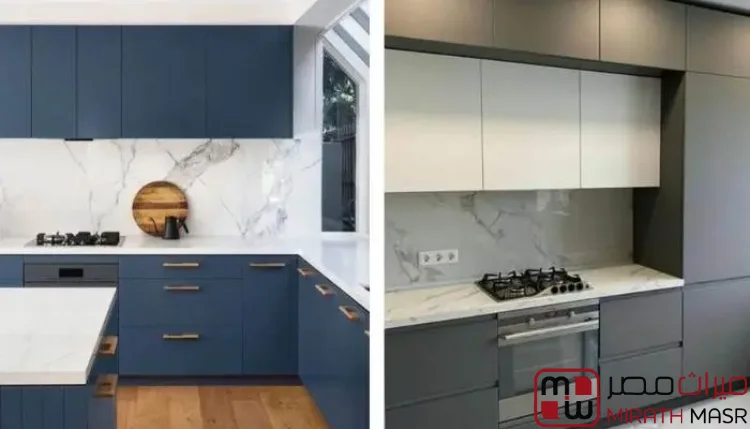 يضفي لمسة من الفخامة والأناقة الاستثنائية على المطبخ، حيث يخلق جو من الهدوء والاسترخاء، كذلك هذا اللون يتناسب بشكل رائع مع التصميمات العصرية والبحرية، ويمكن دمجه مع الخشب الطبيعي لإنتاج تباين جميل.