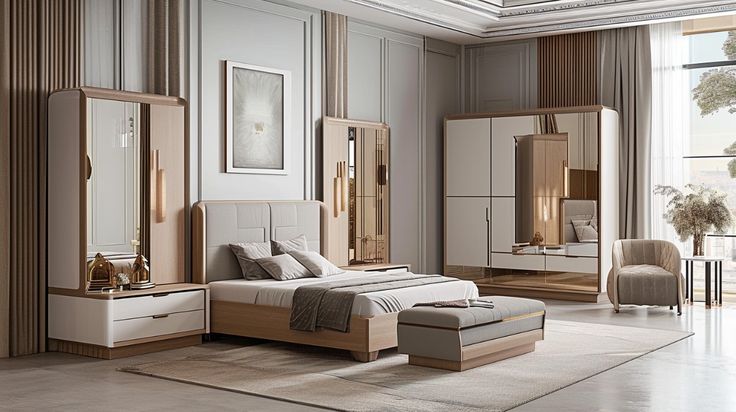 تُعتبر غرف النوم الكاملة الخيار الأمثل لكل من يبحث عن ديكور متناسق يجمع بين الجمال والعملية. فهي لا تضم السرير فقط، بل تأتي عادةً مع دولاب ملابس واسع، كومود بجوار السرير، تسريحة مع مرآة، وأحياناً وحدة أدراج إضافية. هذا التكامل يجعل الغرفة أكثر عملية ويوفر كل ما تحتاجه في مكان واحد.